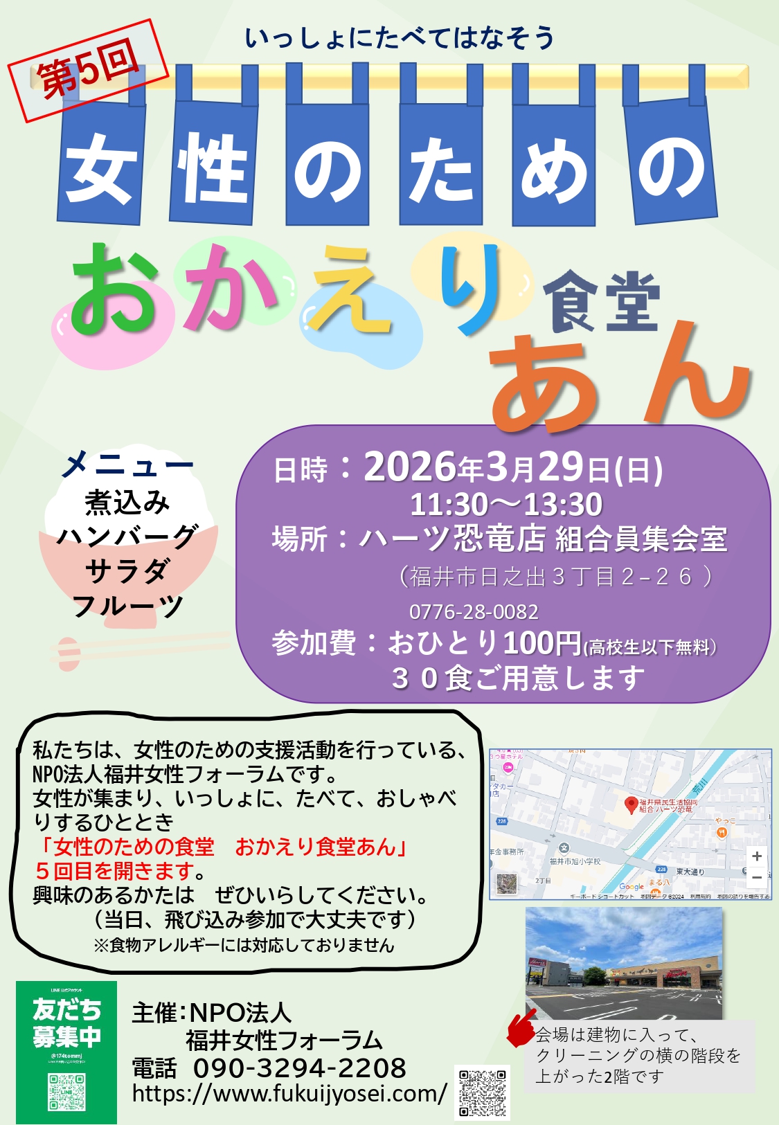 女性のための おかえり食堂“あん”(第5回)を開催いたします!
