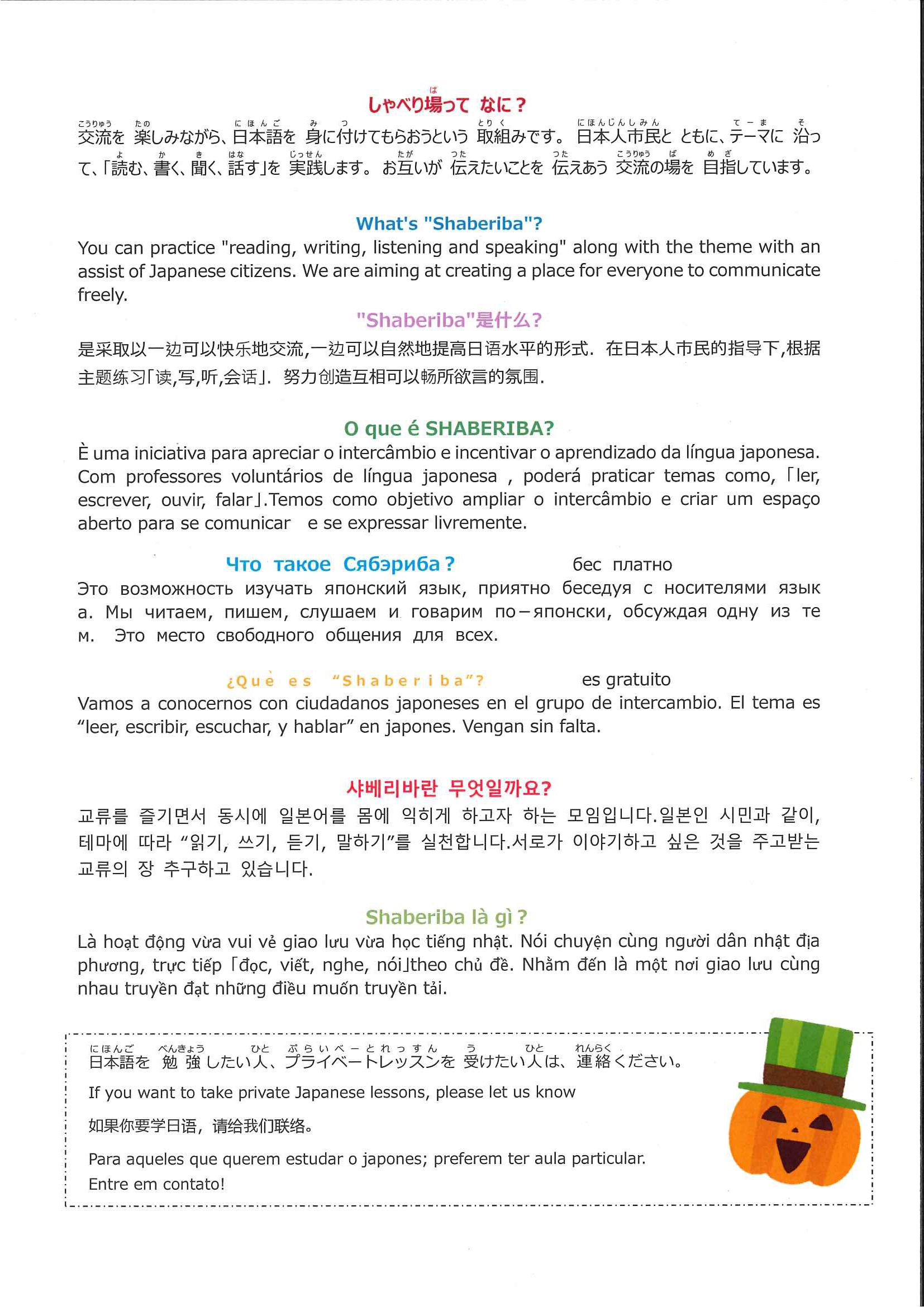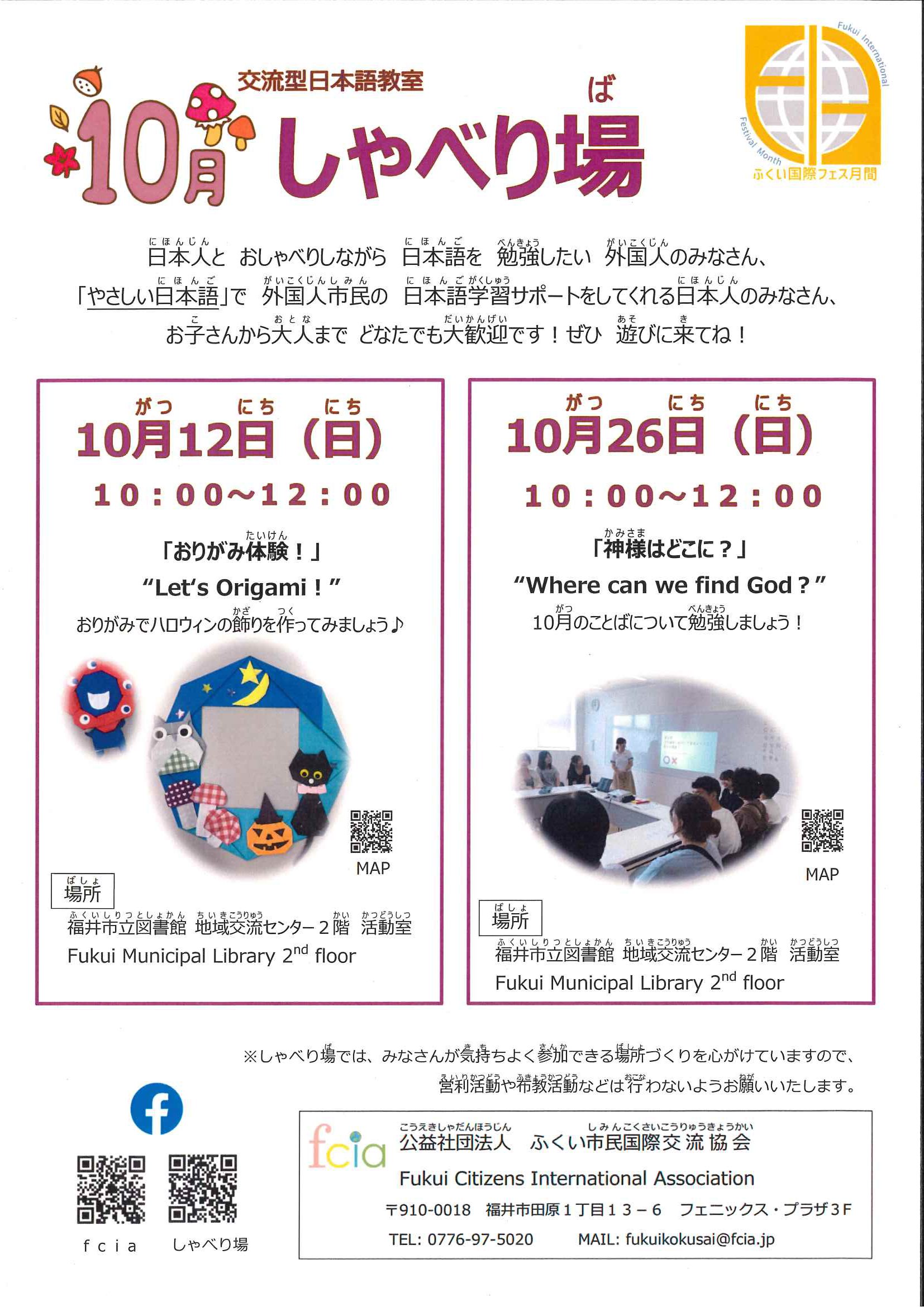 内容 | しゃべり場は、福井市に住む外国人と日本人がやさしい日本語で交流する場です。 |