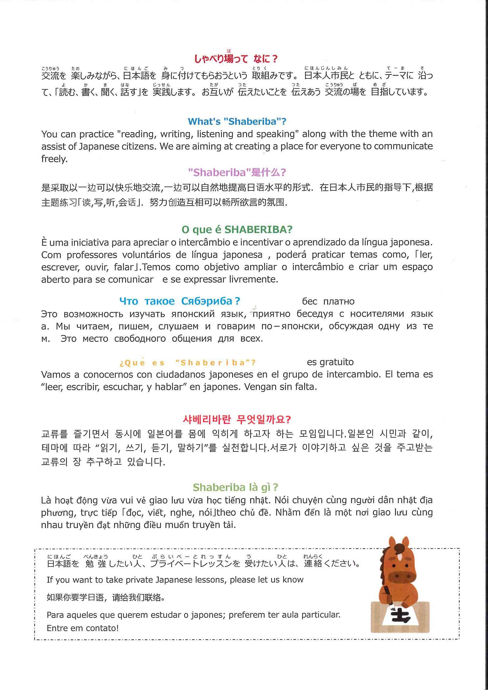 【1月】交流型日本語教室「しゃべり場」
