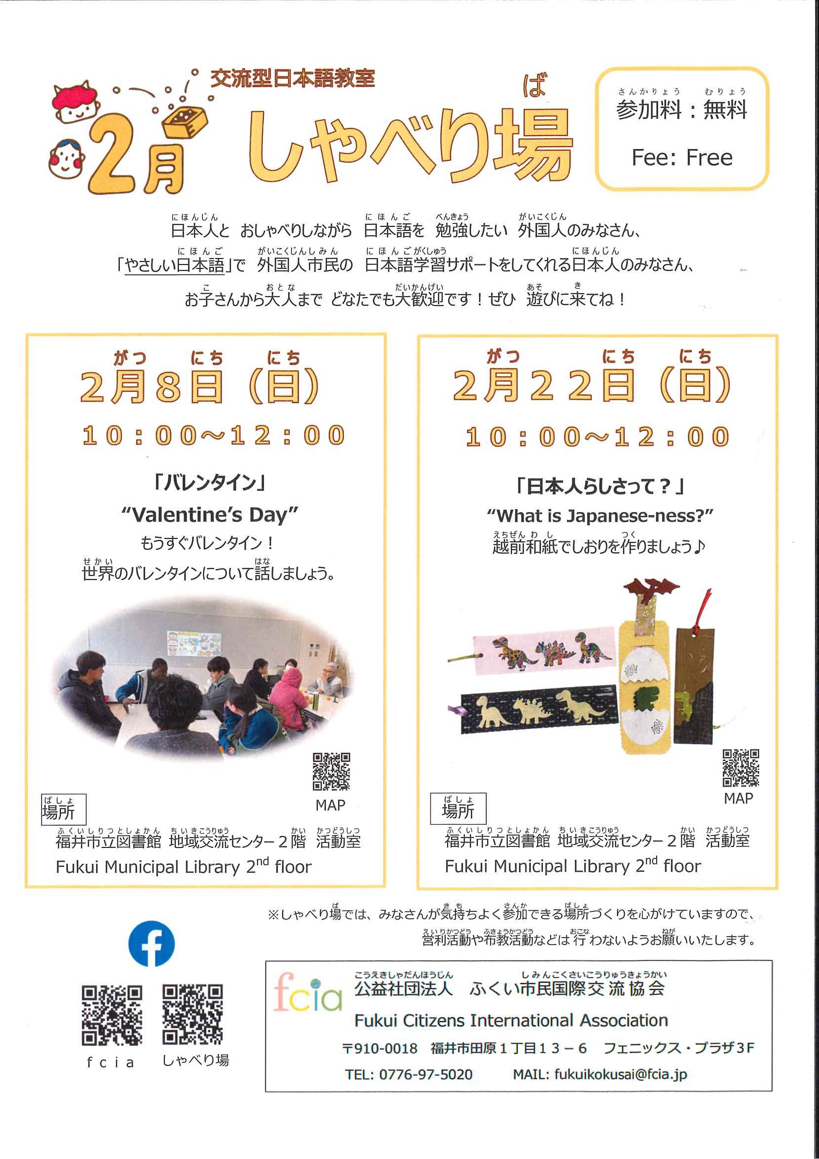 | お問い合わせ先 | (公社)ふくい市民国際交流協会 |
