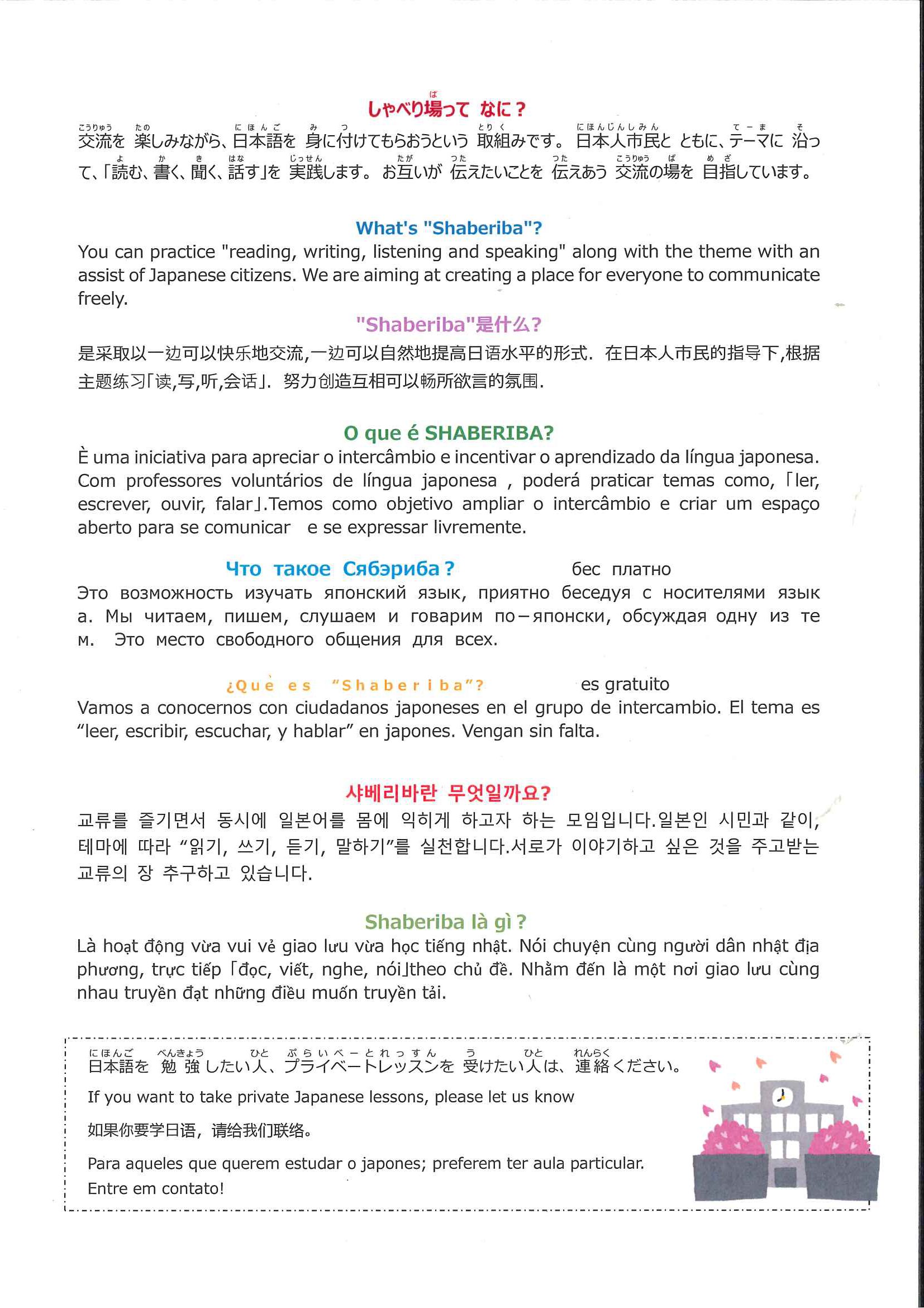 【4月】交流型日本語教室「しゃべり場」