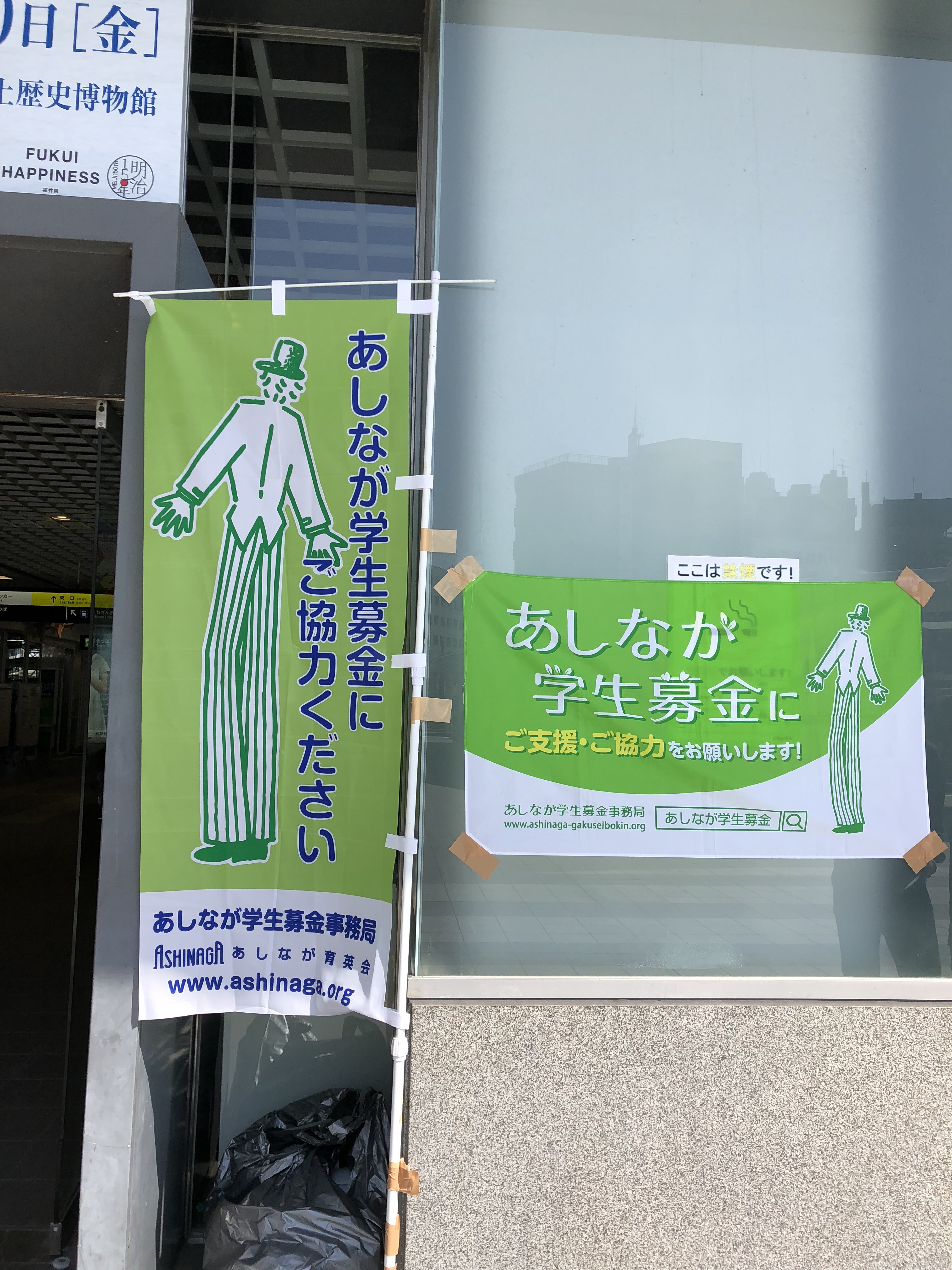ゴールデンウイーク初日、青空のもと「第96回あしなが学生募金」の募金活動が福井駅西口広場の5か所で行われました。あしなが学生募金とは、病気、災害、自死遺児、親が重度の障がいを持つ子どもや、サブサハラ、アフリカ49ヶ国の遺児が高等教育を受けるための奨学金を支援するための募金になります。その中で学生募金事務局は、48年間、約10万人の遺児たちの進学を支援してきました。