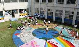 6月8日(土)成和中学校「緑のカーテン・中庭清掃ボランティア」に、約60名の生徒が参加しました。生徒会執行部が中心となって呼びかけを行い、早朝7時から約2時間、草むしり・側溝清掃・地上絵清掃・マリーゴールドの植え付け・アサガオやフウセンカズラの種植えを協力しながら行いました。